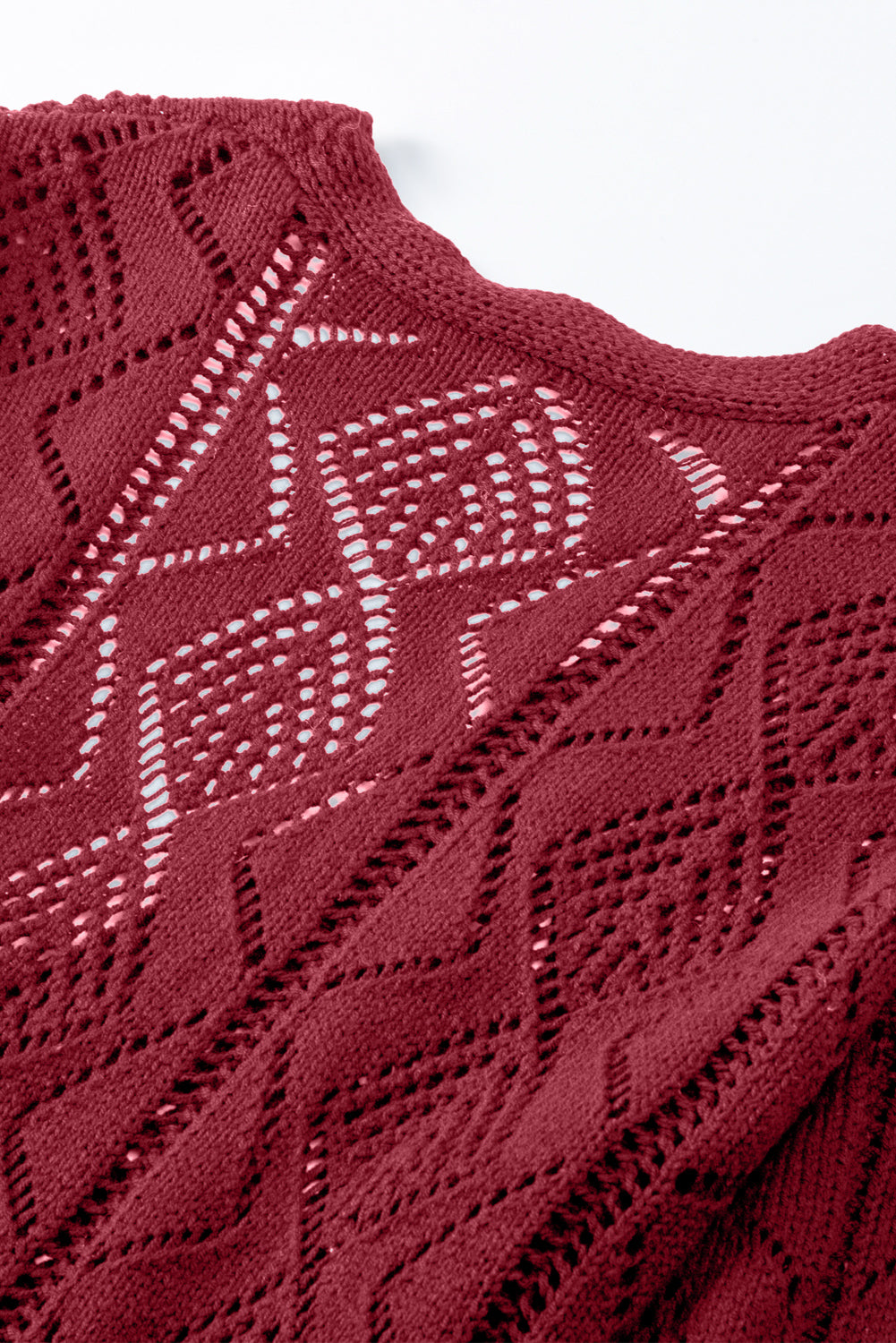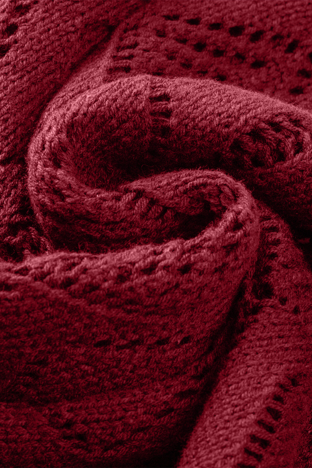 Red Button Up Hollow Out Loose Long Cardigan - Roses
