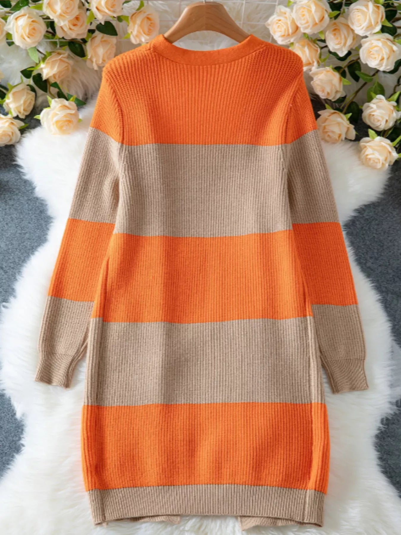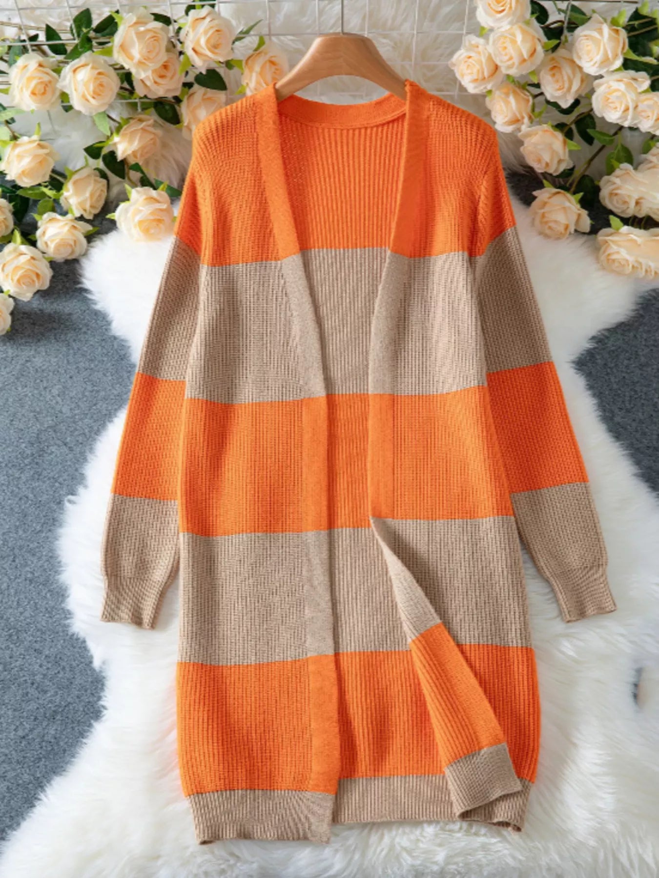 Color Block Open Front Knit Cardigan